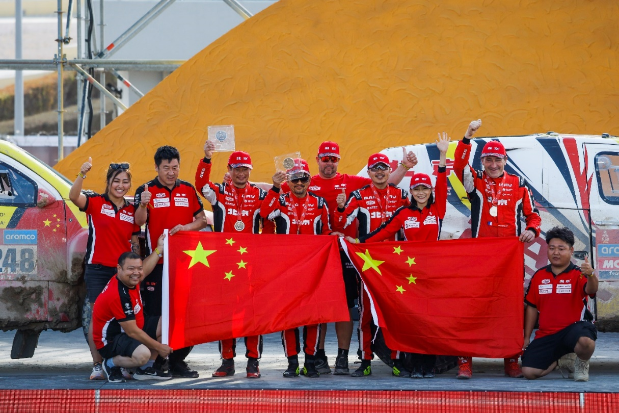 As the only Chinese car manufacturer team, BAIC ORV team is competing in Dakar for the third year. Between the two BAIC teams, BAIC ORV Team 233# composed of Zhang Guoyu/Jean Pierre GARCIN won 10th place in the T1+ category, as well as first among Chinese manufacturer teams. The other Team 248#, Zi Yunliang/Sha He, won the Dakar 2023 Winner Rookie Award of the Year. Moreover, Team 233# won China's first FIA World Rally Raid Championship (W2RC) stage points and ranked 12th with 10 pints in the Dakar Rally. BAIC ORV Team ranked 4th among the FIA W2RC manufacturer teams.
