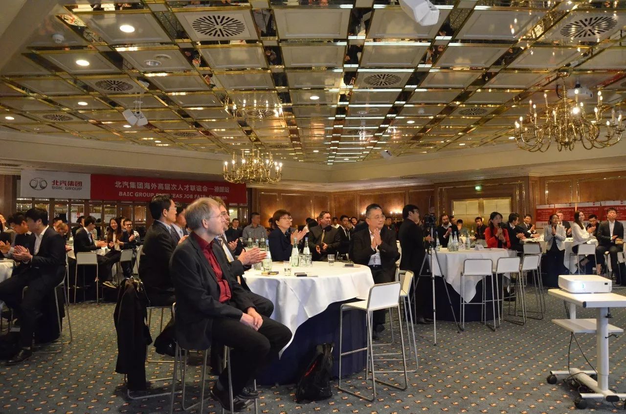 來自全德華人機電工程學會、中德汽車工業技術學會、慕尼黑中國學生學者聯合會、斯圖加特中國學者學生聯合會等多家單位代表,以及相關行業專家、高層次人才等出席聯誼會。100余名優秀人才均表達愿意加盟北汽,并與北汽集團招聘團隊進行了深入溝通和求職交流,現場氣氛十分熱烈。各單位現場確定了數十人的初步錄用意向,其中含汽車行業、通用航空等相關產業的精英人士。
