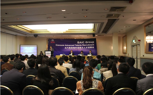 2013年6月22日, 北汽集團(tuán)海外(英國)高層次人才招聘發(fā)布會在英國倫敦成功舉辦。北京汽車集團(tuán)有限公司黨委副書記李志立,黨委常委、組織部部長兼人力資源部部長高原,中國駐英國大使館一等秘書、留學(xué)生管理中心主任閆麗、全英學(xué)聯(lián)主席孟德建等領(lǐng)導(dǎo)出席了招聘發(fā)布會。本次北汽集團(tuán)招聘會共在英國倫敦、謝菲爾德、伯明翰三地舉辦,共吸引400多名優(yōu)秀人才到場應(yīng)聘,在英國引起了強烈反響。