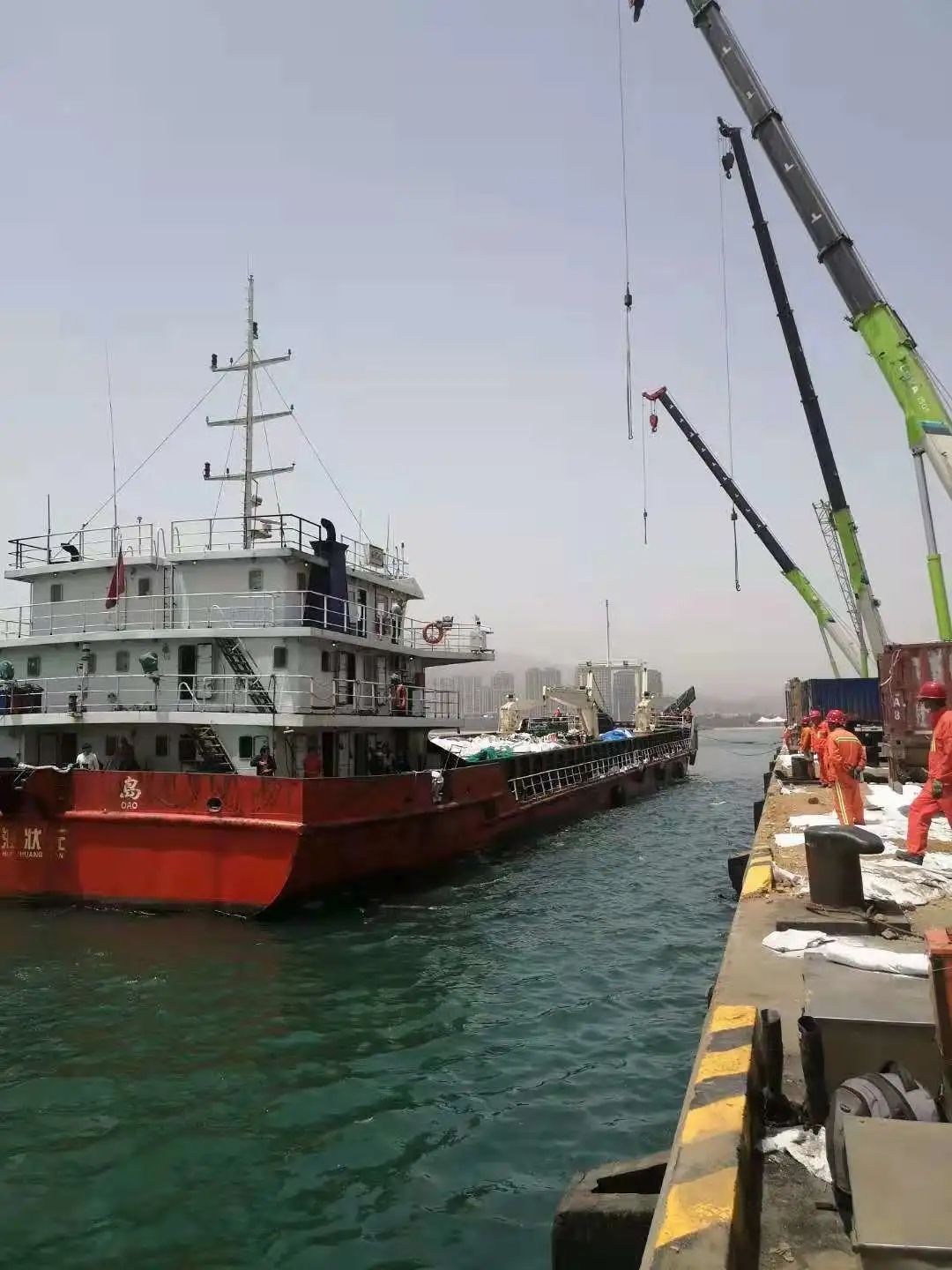 5 月 16 日,青島濱海起重機(jī)械有限公司接到緊急任務(wù),要求全力參與船舶搶險(xiǎn)救援任務(wù)。公司隨即派出8臺(tái)起重機(jī)立即奔赴大灣港碼頭開展搶險(xiǎn)應(yīng)急工作,其中包括 2 臺(tái)雷薩 55X5 輪式起重機(jī)、3 臺(tái) 25Q5 汽車起重機(jī)共 5 臺(tái)福田雷薩起重機(jī)參與救援。